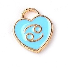 Charm Cancer Heart Sky Blue Enamel 14x12 Light Gold
