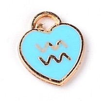 Charm Aquarius Heart Sky Blue Enamel 14x12 Light Gold