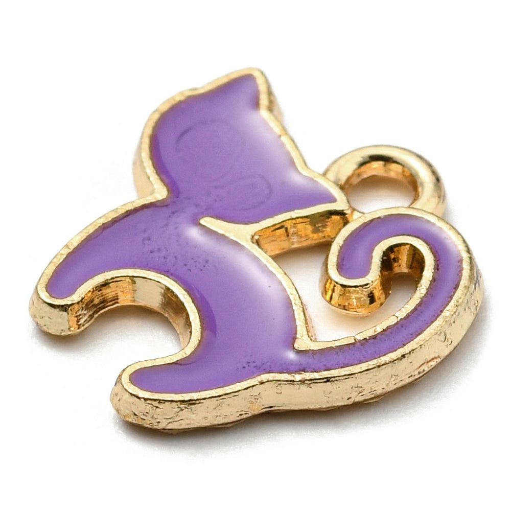 Charm Cute Kitty 13x13 Purple Enamel CNLF Gold