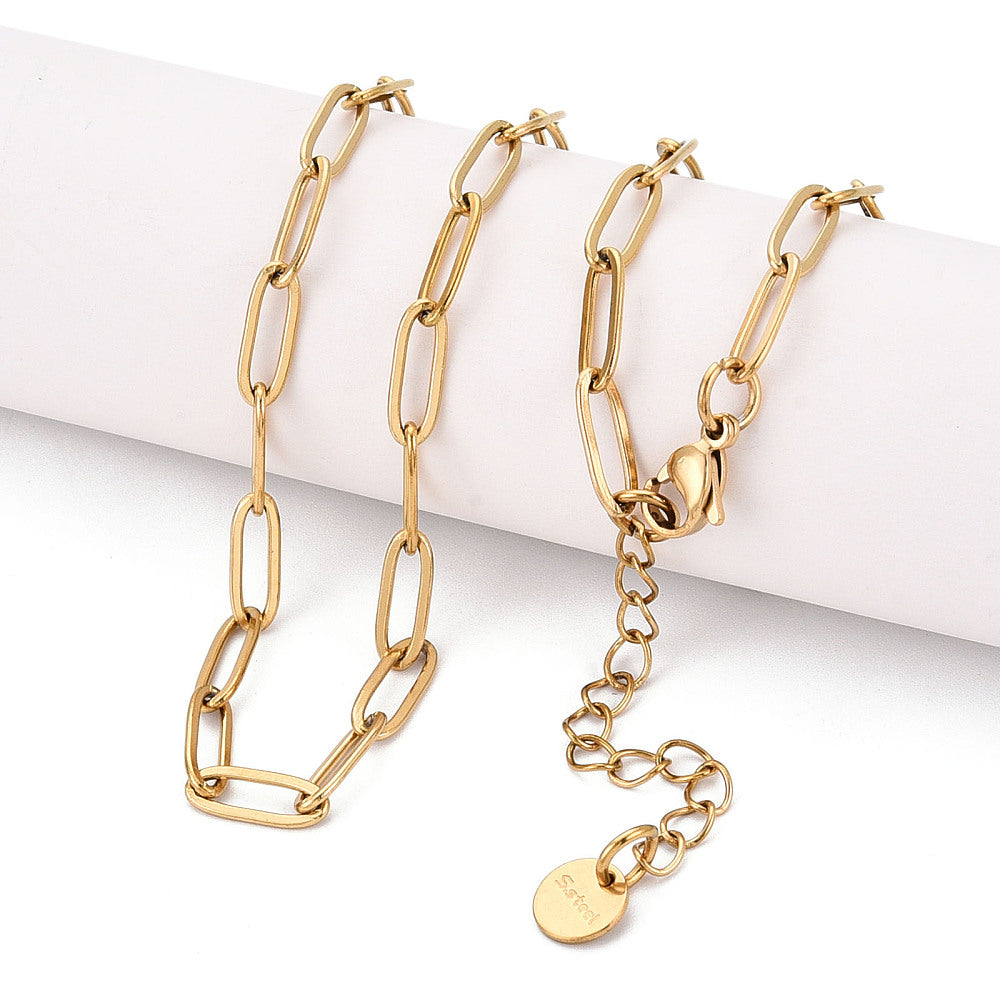 Make a bold statement with this 18k gold-plated stainless-steel paperclip necklace.  The premium gold plating delivers that coveted luxury finish without the premium price tag, while surgical-grade stainless steel ensures lasting durability and resistance to tarnishing.