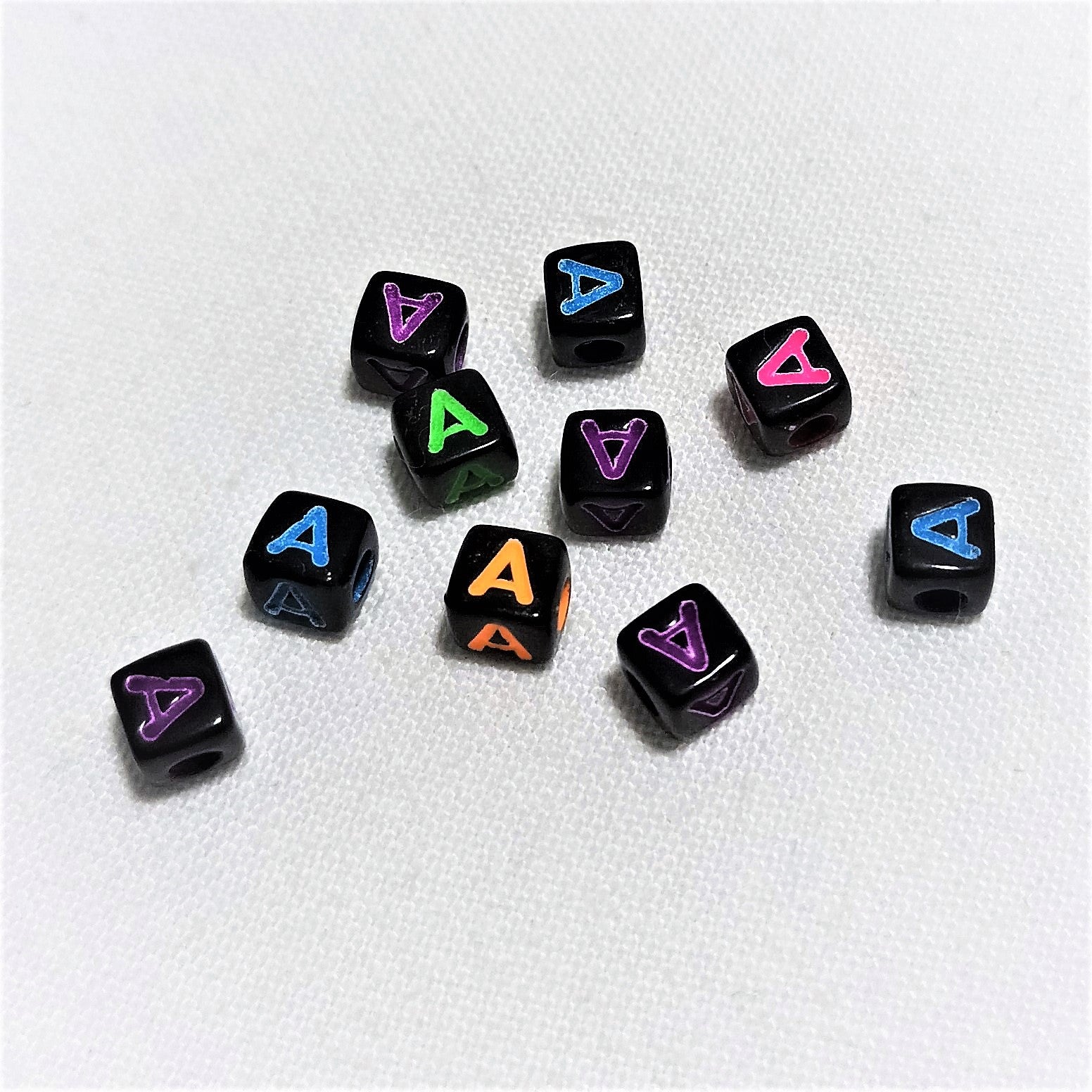 Personalise your jewellery with these acrylic Square 4mm black on mixed colour alphabet beads.