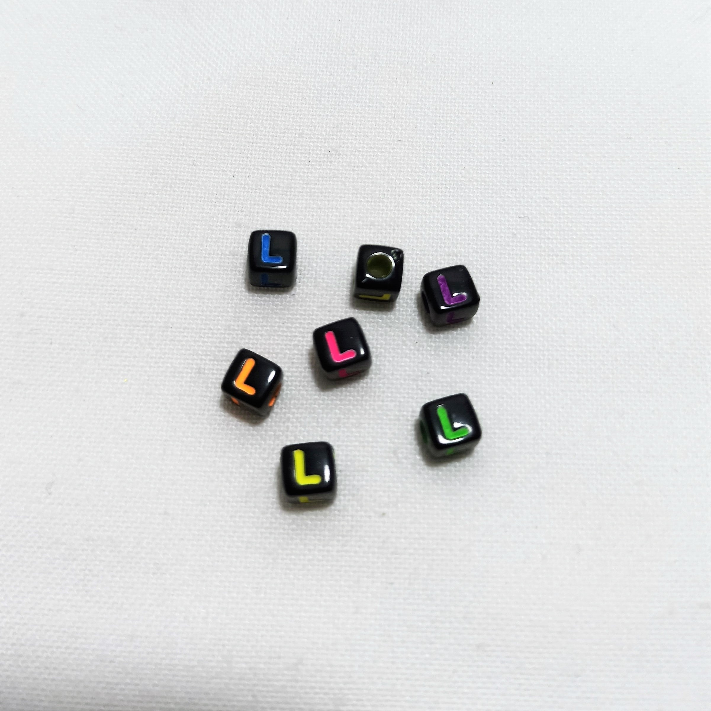 Personalise your jewellery with these acrylic Square 4mm black on mixed colour alphabet beads.