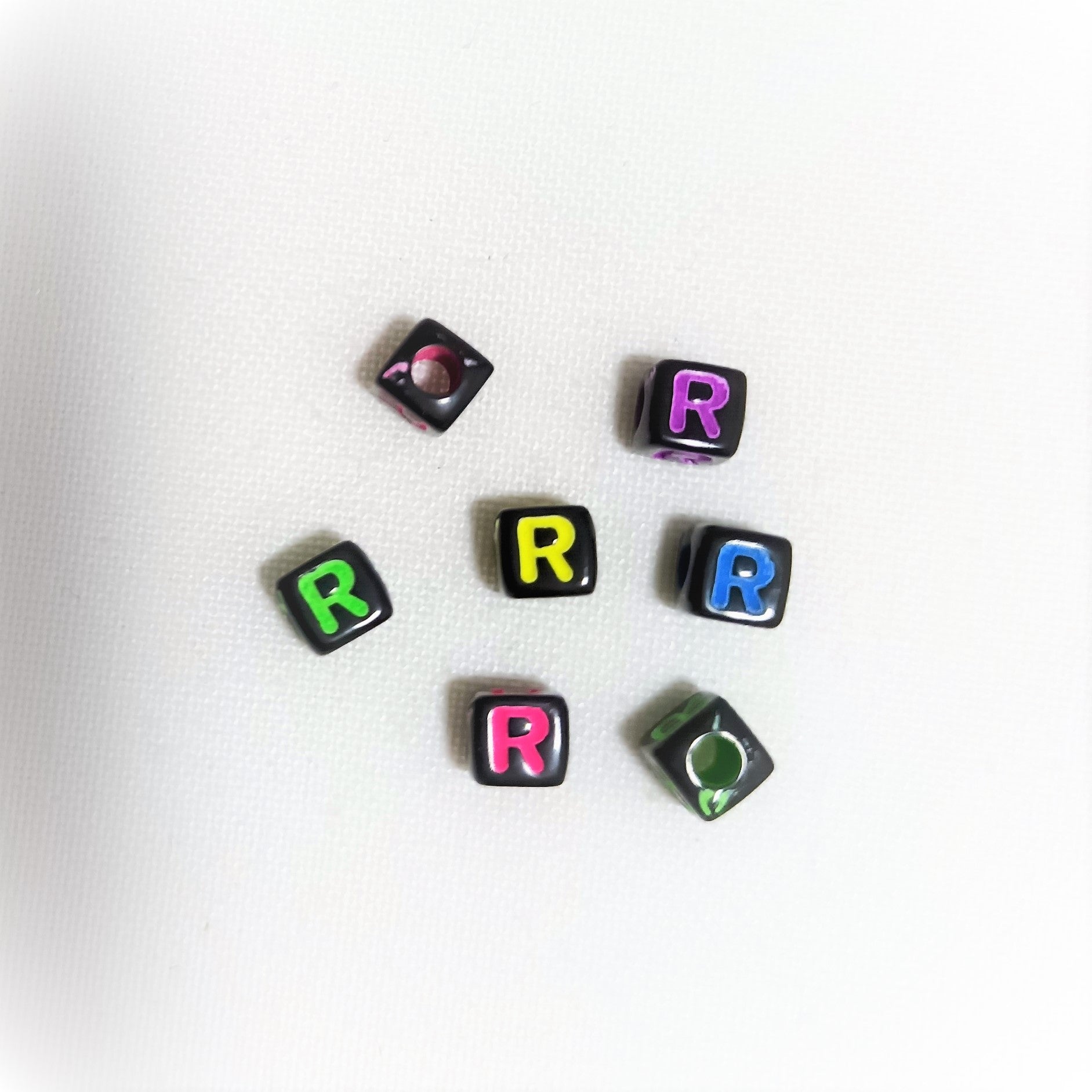 Personalise your jewellery with these acrylic Square 4mm black on mixed colour alphabet beads.