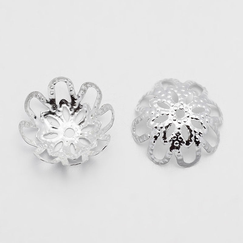 Bead Cap 14mm Silver Plate Domed Flower 20pcs per packet
