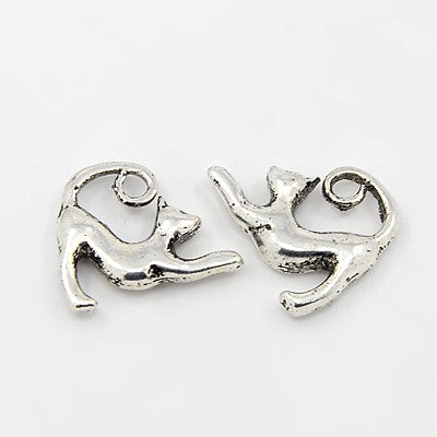 Charm Cat Stretching 14x17 Lead & Nickel Free Silver