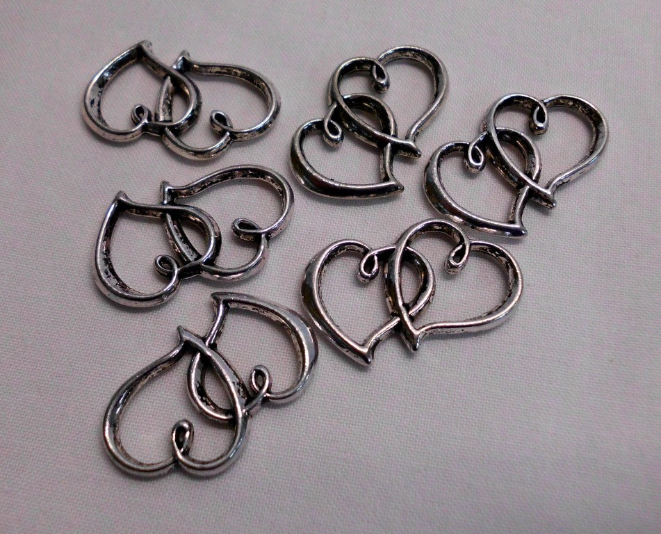 Charm Double Heart 24x31 Silver
