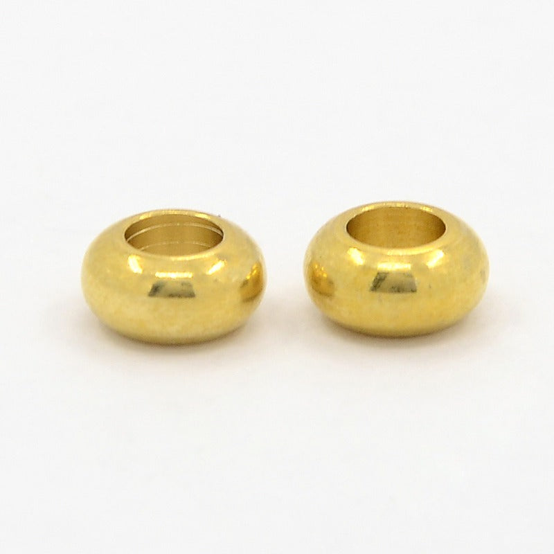 Crow Bead 8x4mm 4mm Hole Gold Per Each. The holes of these beads are perfect for stringing on leather cord and other large stringing material.