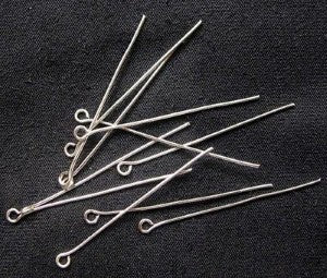 A jewellery-maker's staple, Eye pins allow you to make earrings, pendants, links and drop embellishments faster than lightning. Due to the manufacturing process, headpins and eye pins will often arrive bent. However, they are soft metal, so they are easily reshaped.