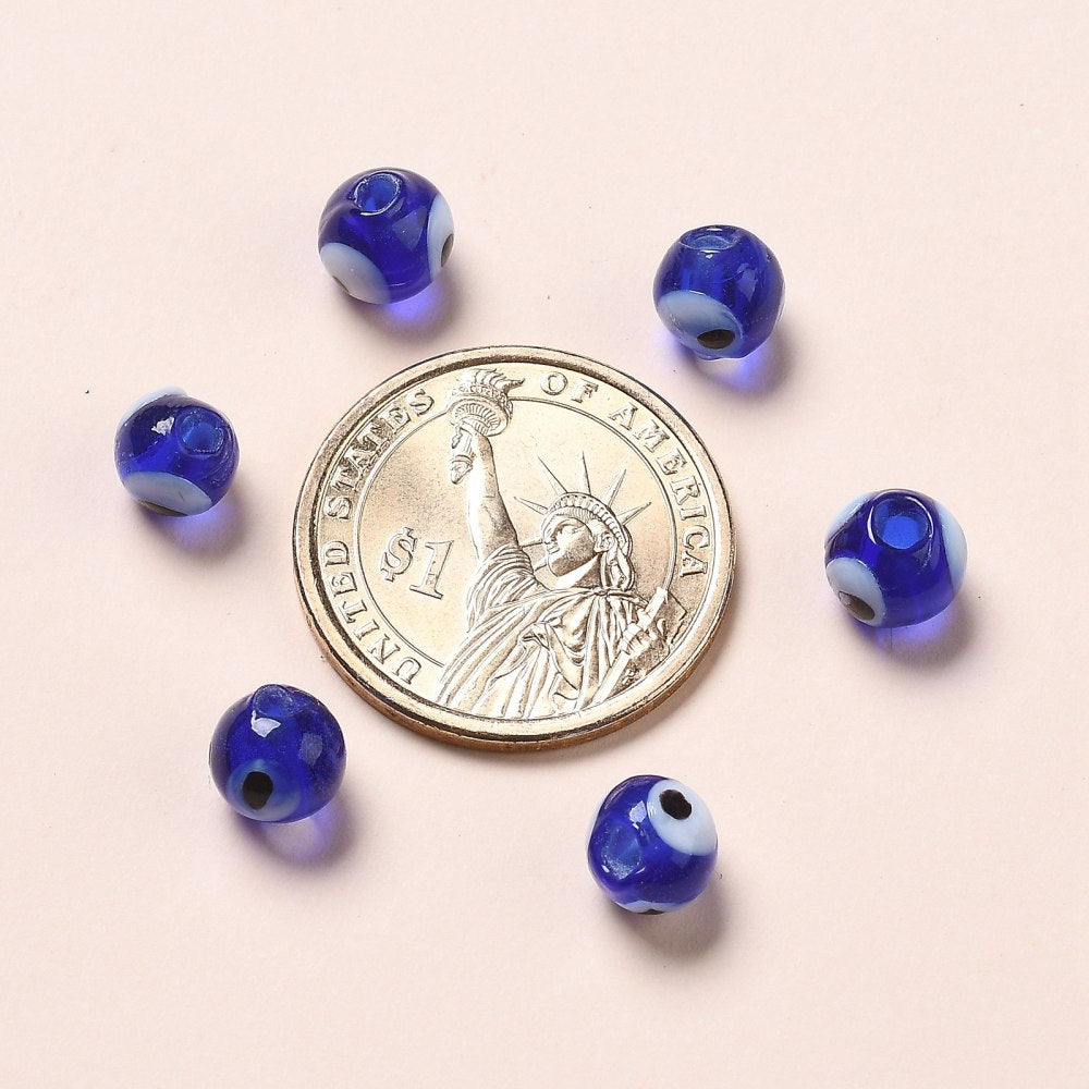 Evil Eye Glass 8mm Round Blue - (Pack of 10) - is backordered and will ship as soon as it is back in stock.