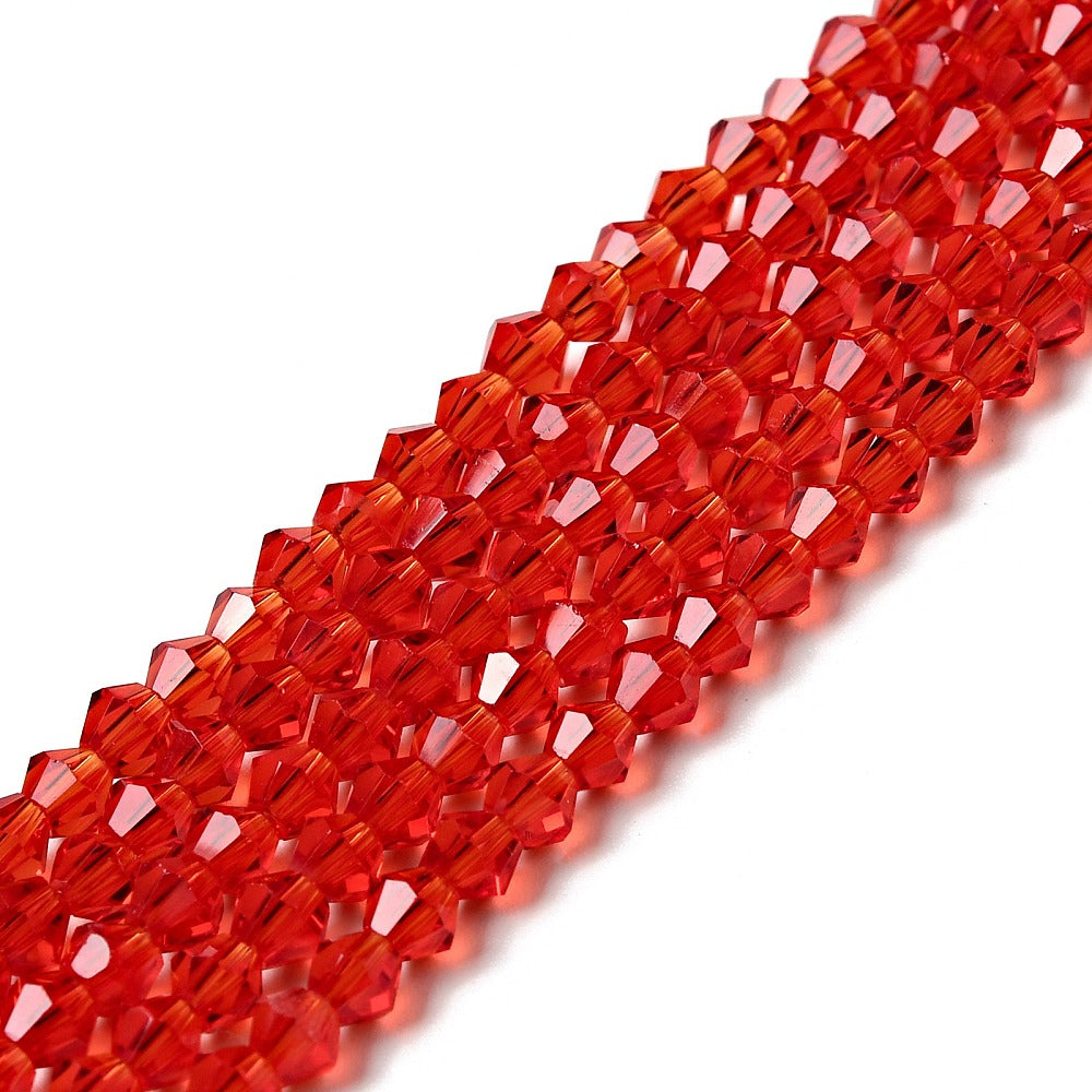 Glass Bicone 3mm Light Siam approx 116 beads per 34.5cm strand