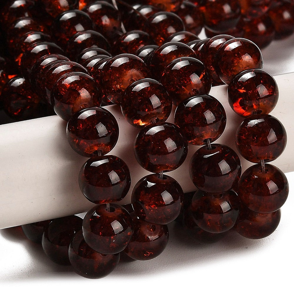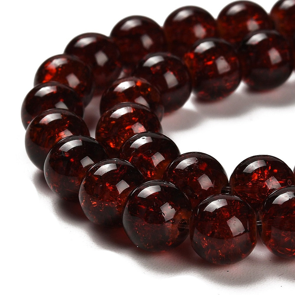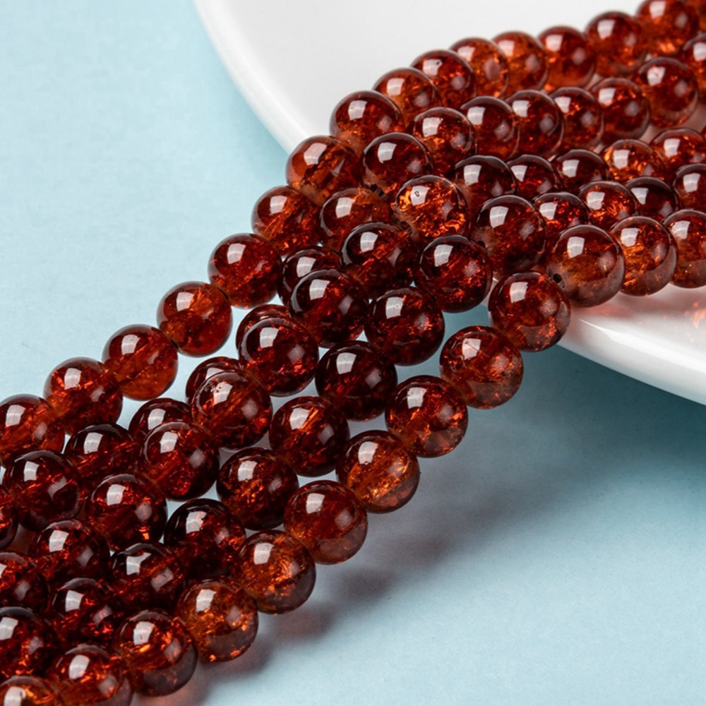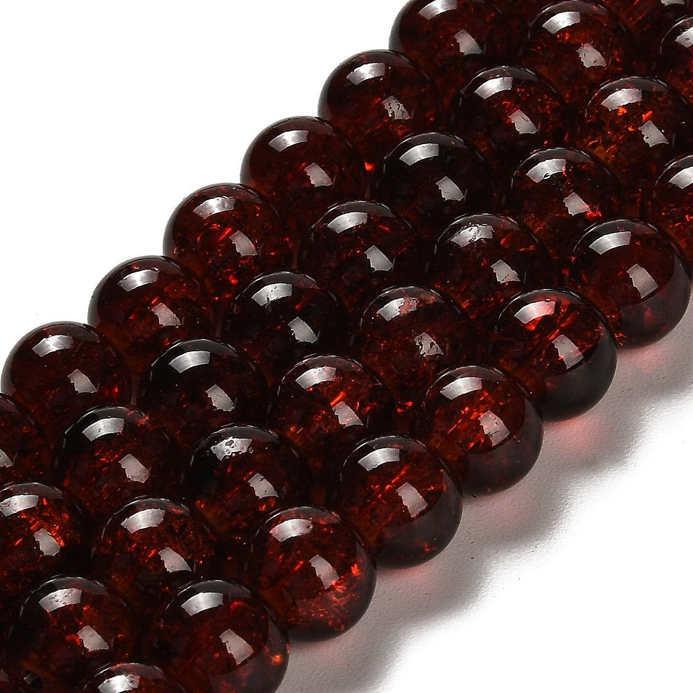 Glass Crackle 10mm Rnd Peru 86cm strand approx 89pcs per strand hole: about 1mm. Crackle beads are heated and rapidly cooled to produce internal crackles. Crackles increase light reflection inside the beads deepening the drama of colour. Size and shape may vary slightly and colour may vary from dye lot to dye lot.