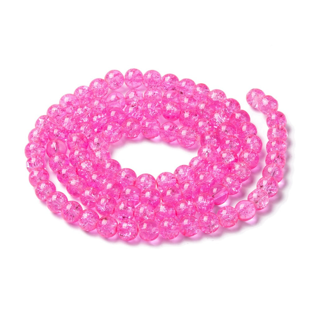 Glass Crackle 8m Round Pink 86cm strand  approx 105 pcs per strand  hole: about 1mm. Crackle beads are heated and rapidly cooled to produce internal crackles. Crackles increase light reflection inside the beads deepening the drama of colour. Size and shape may vary slightly and colour may vary from dye lot to dye lot.