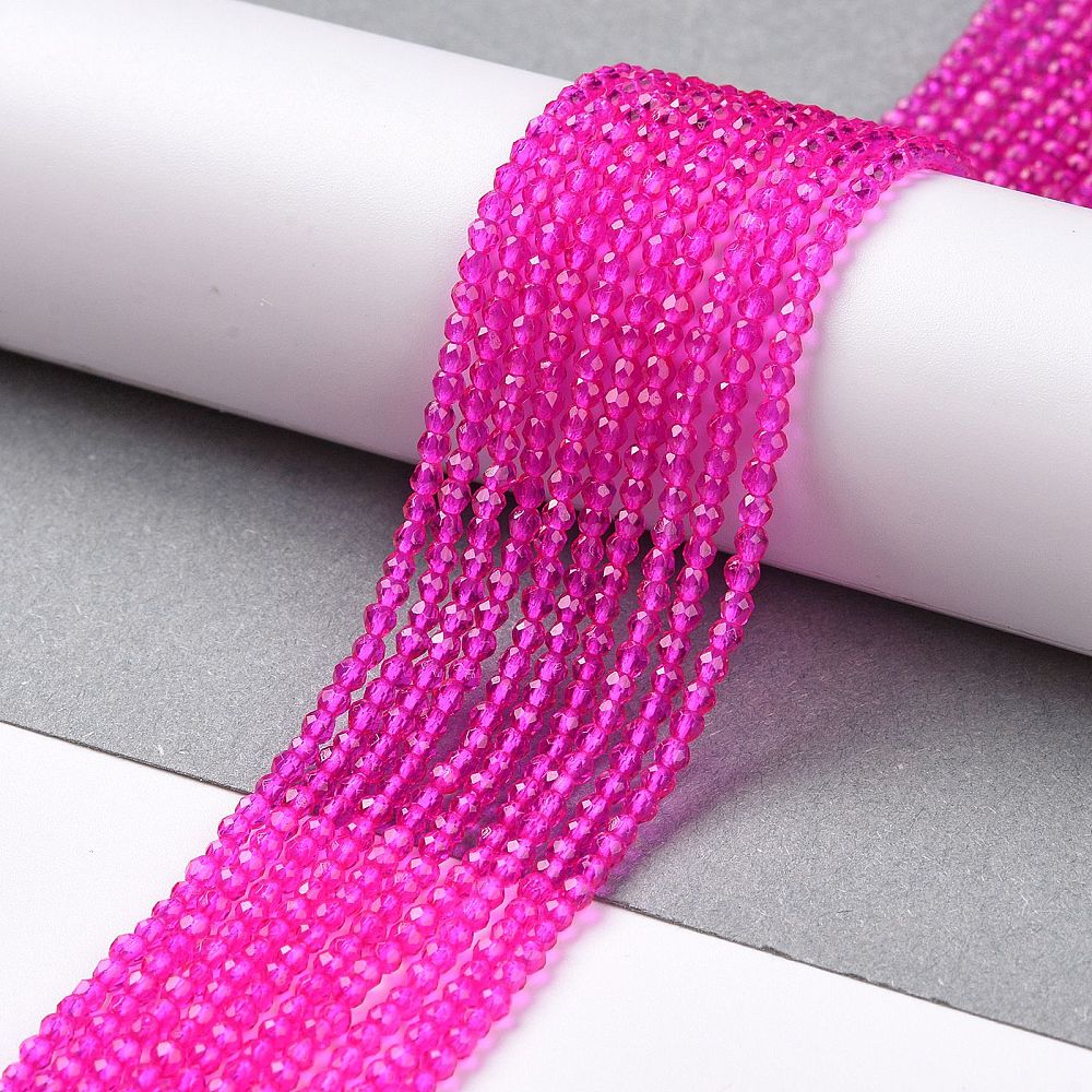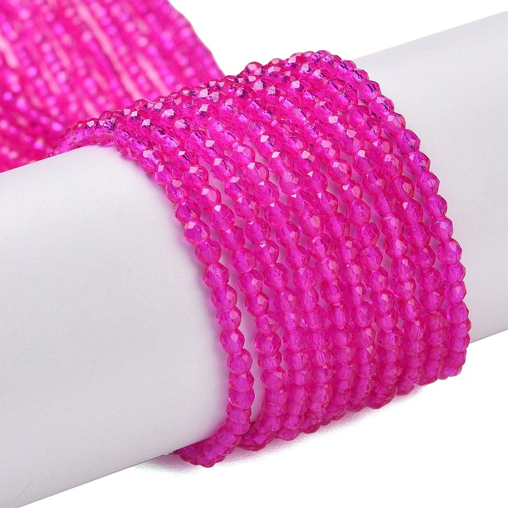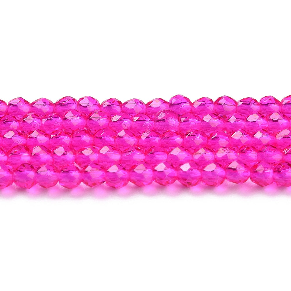 Glass Facet 2mm Round Magenta approx 182 beads per 36cm strand