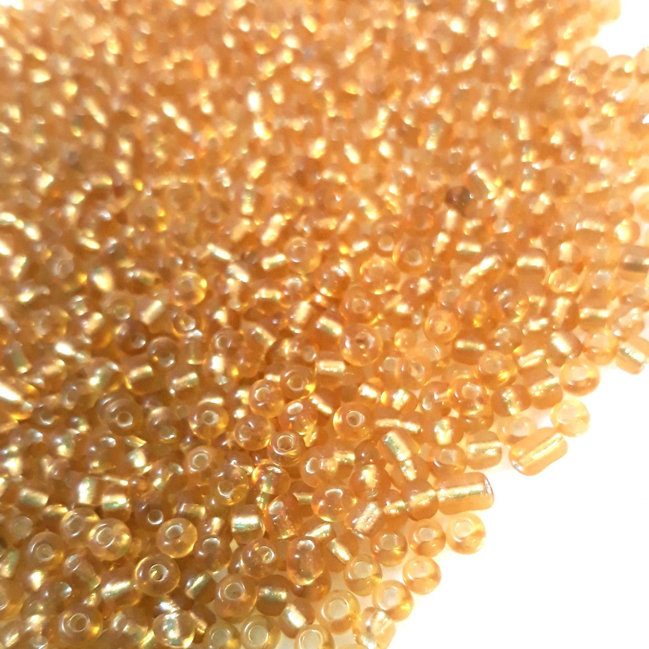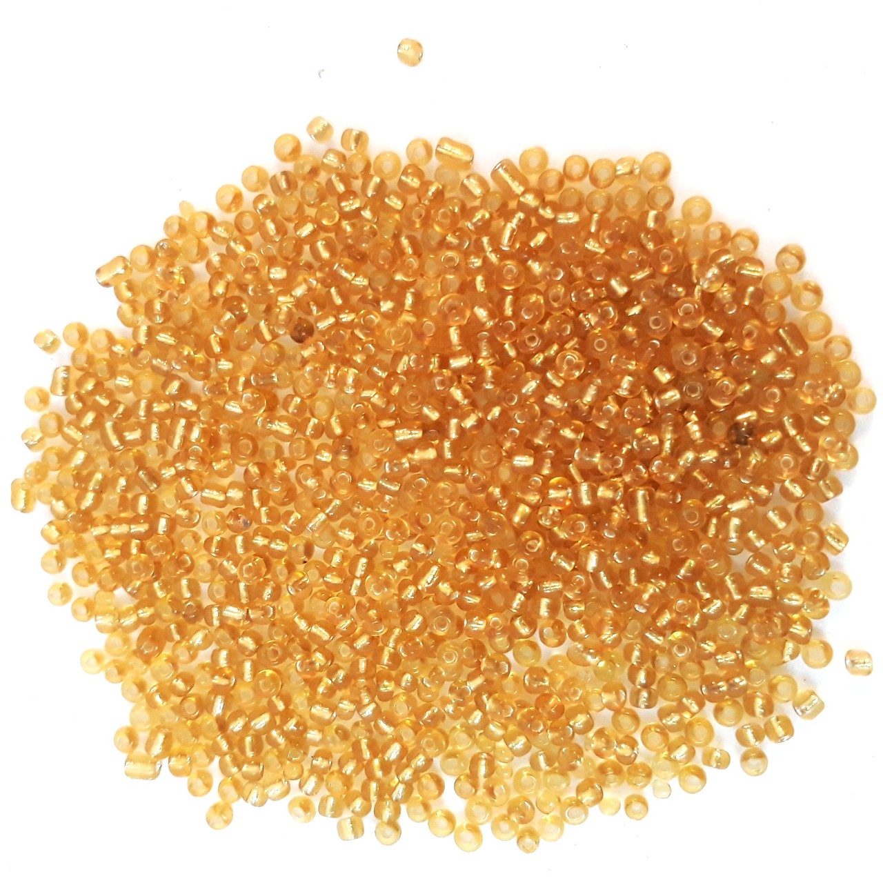 Glass Seed Bead #8 Silver Lined Gold Per Gram