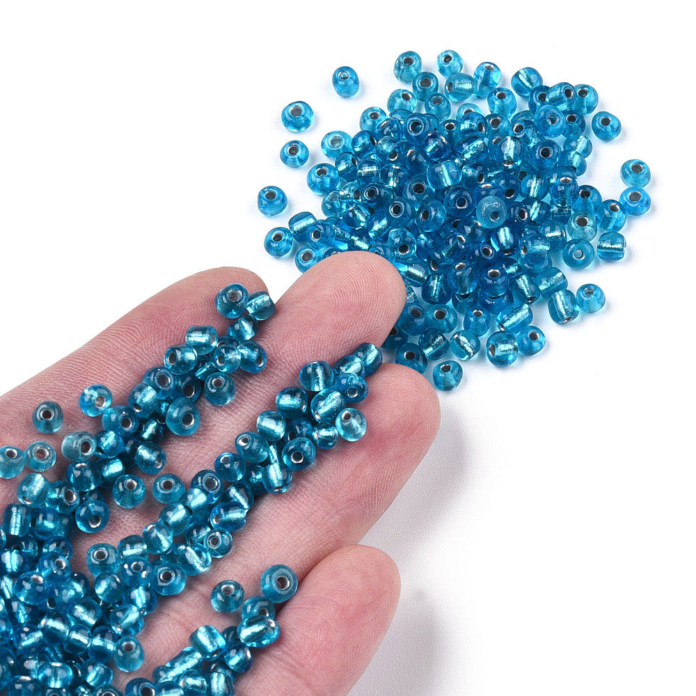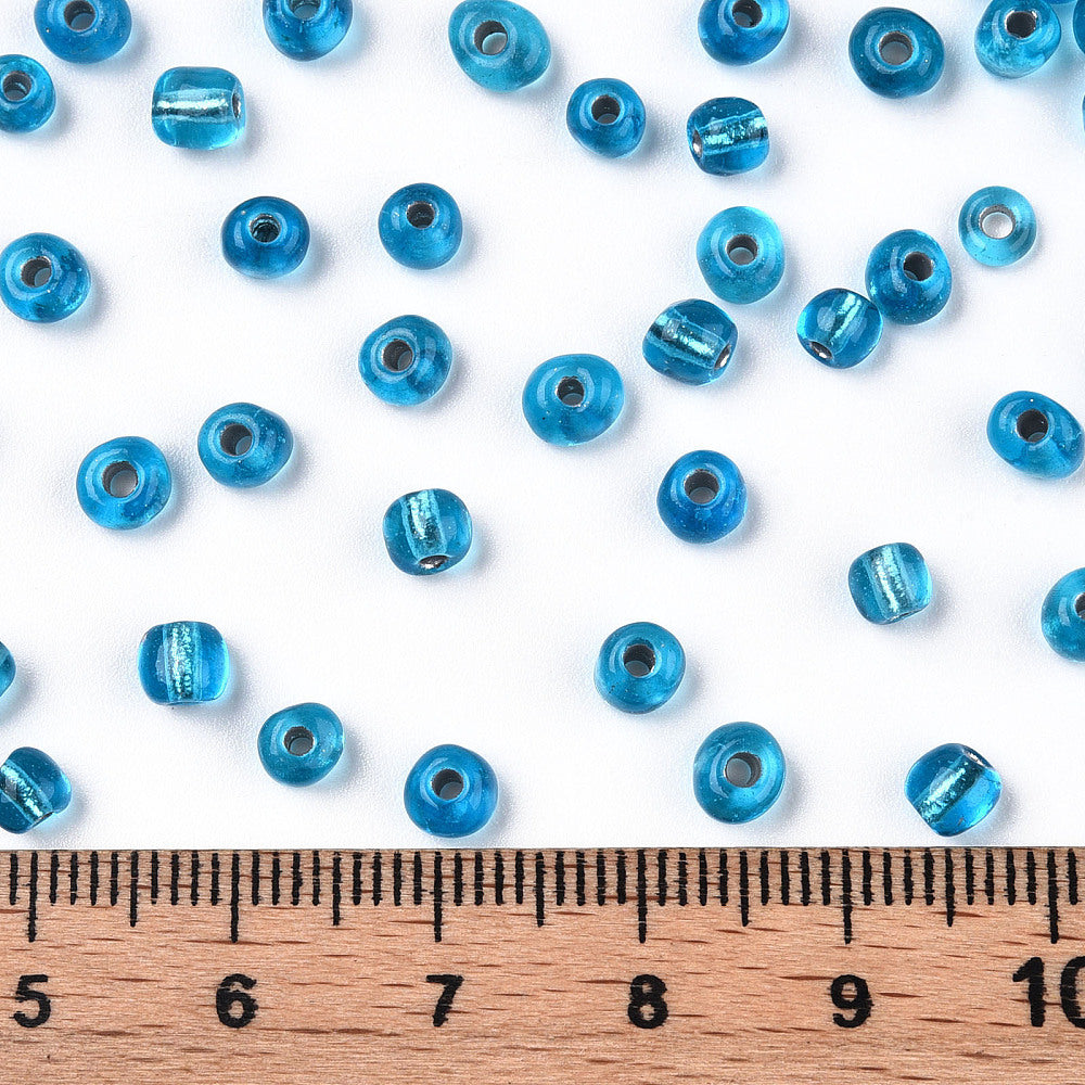 Glass Seed Bead No 6 Silver Lined Steel Blue Per Gram