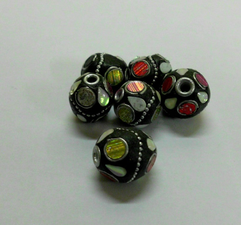 Kashmiri 19mm Round Black base with Teardrops & Circles