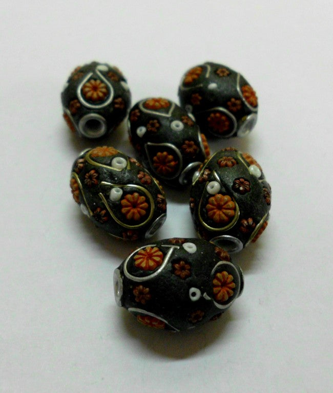 Kashmiri Oval 21x16 Brown/Orange Flower