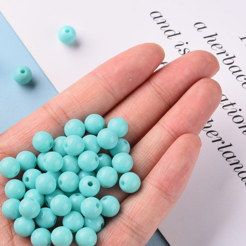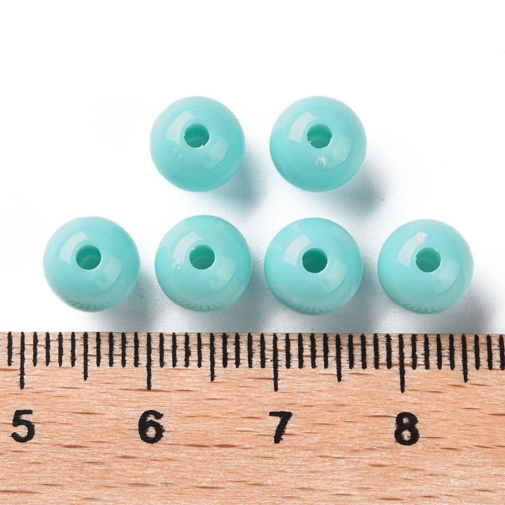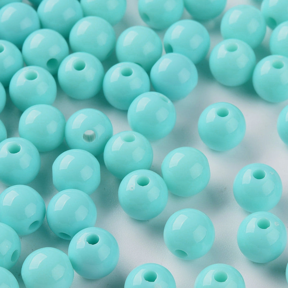 Round Acrylic 7.5mm Turquoise 2mm Hole Per Gram. Approx 20 pieces per 5 grams. These lightweight beads are great for multi-strand necklaces. Blend colours and sizes for large designs that are comfortable to wear. Sizes, shapes and colours may vary.