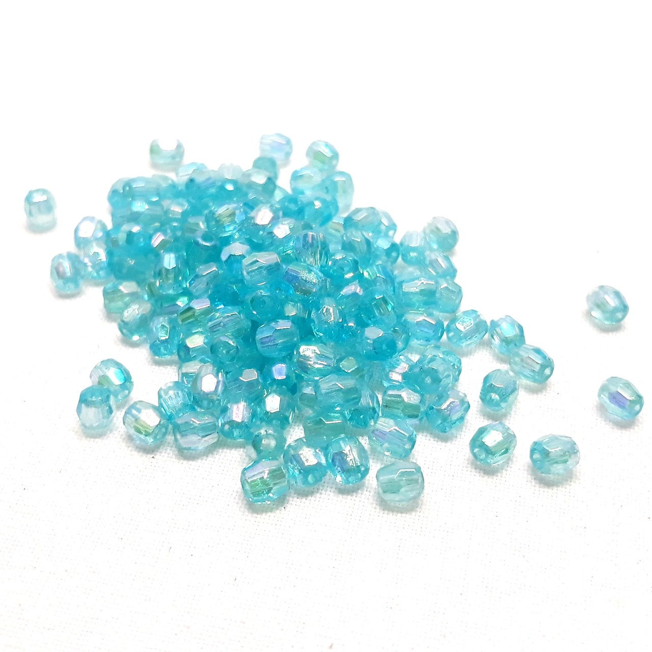 Round Facet Plastic 4mm Transparant Light Blue AB Per Gram