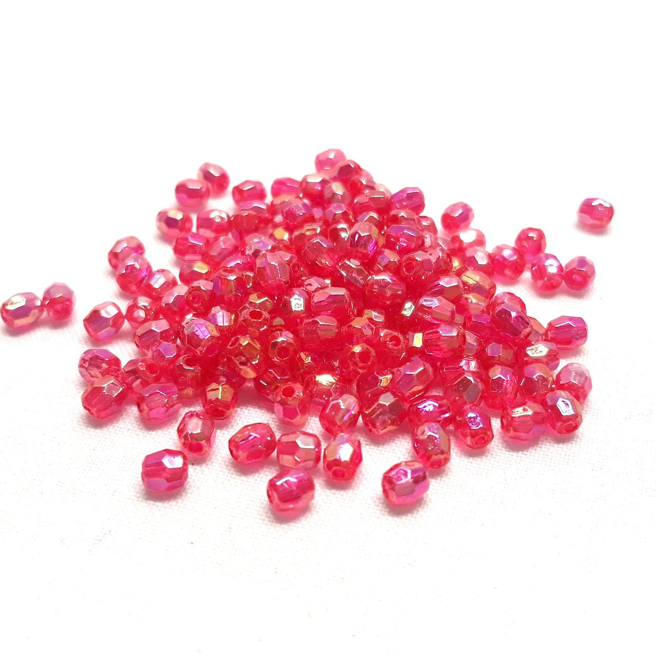 Round Facet Plastic 4mm Transparant Pink AB Per Gram