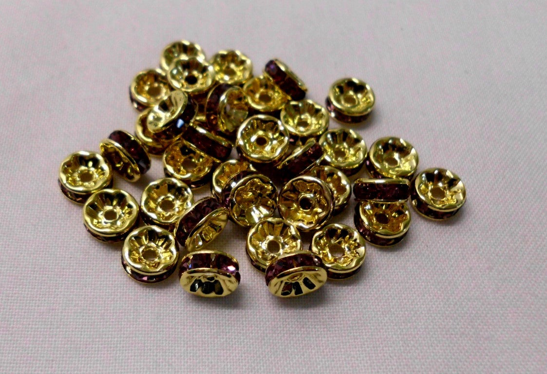 Rondelle 8mm Gold Nickle Free Light Amethyst