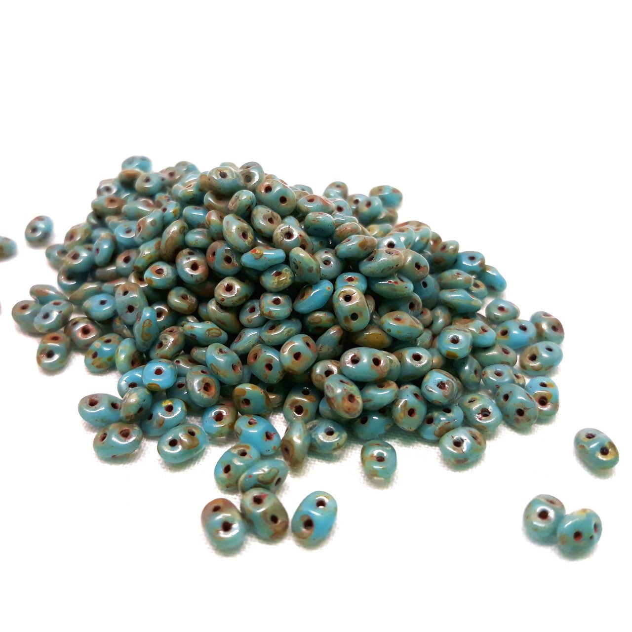 SuperDuo Blue Travertine Dk 2.5x5 P/g
