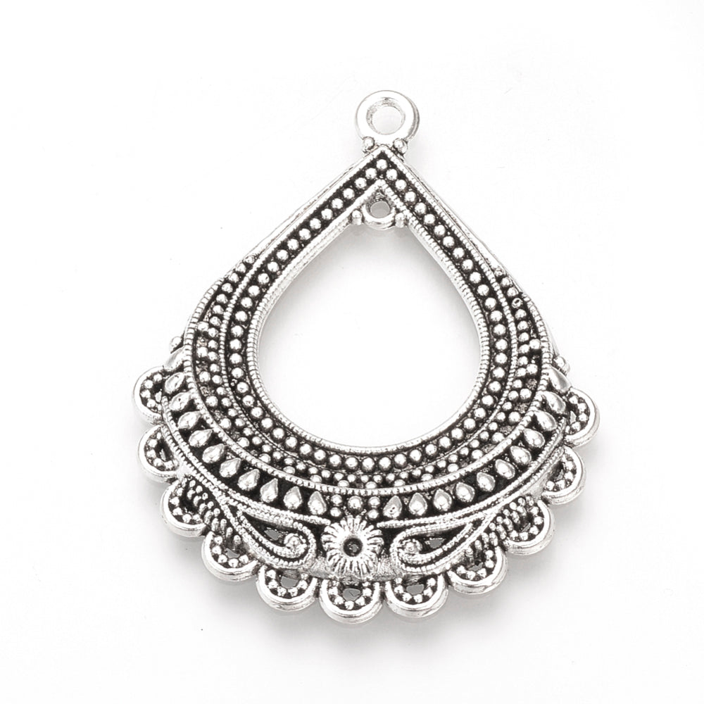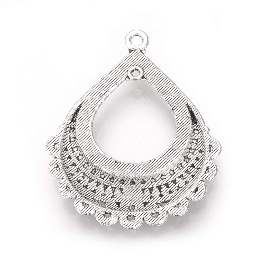 Earring Blank Teardrop Cadmium and Lead-Free Antique Silver 43x35mm 1 pair